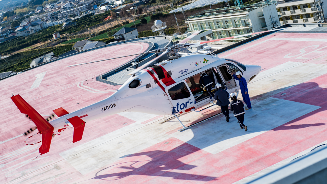 当院には以前から高度救命救急センターがあり、ドクターヘリの基地病院となっています。
