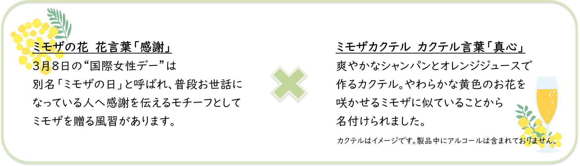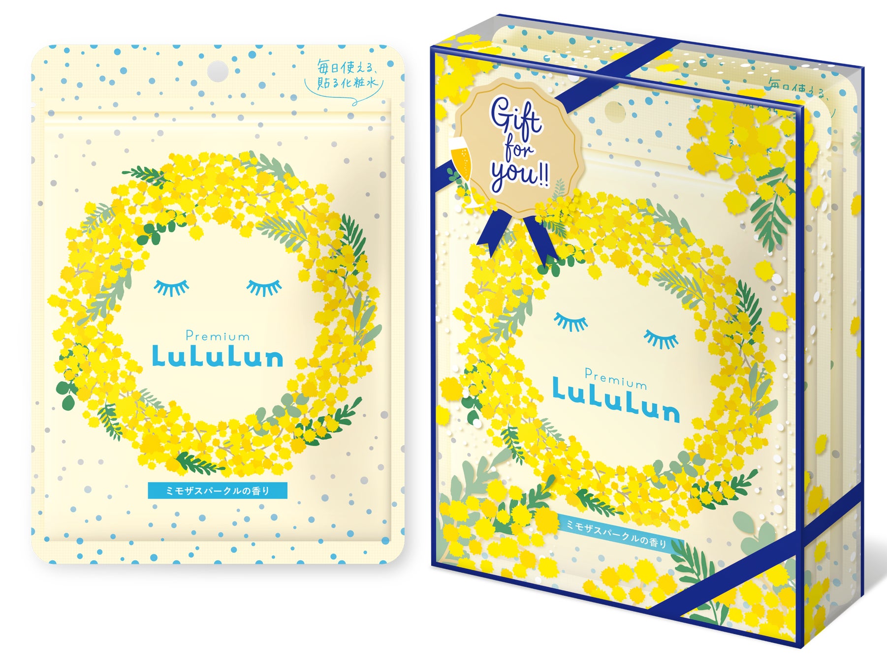 “お肌が喜ぶキラキラギフト”をテーマに、“感謝”の花言葉を持つミモザのお花と、“真心”のカクテル言葉を持つミモザのカクテルをモチーフにした『プレミアムルルルン ミモザ(ミモザスパークルの香り)』が誕生。
