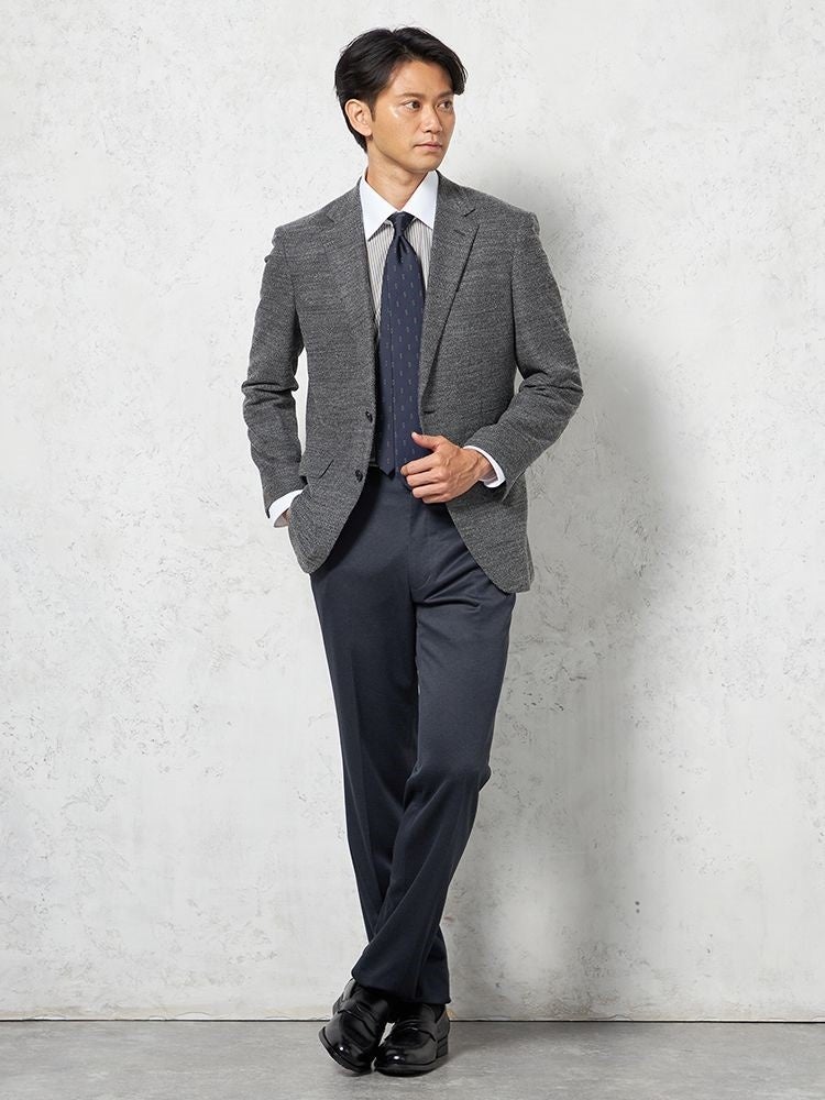 ■ニットスーツの魅力はラクさ!高ストレッチでビジネスシーンをラクに過ごす