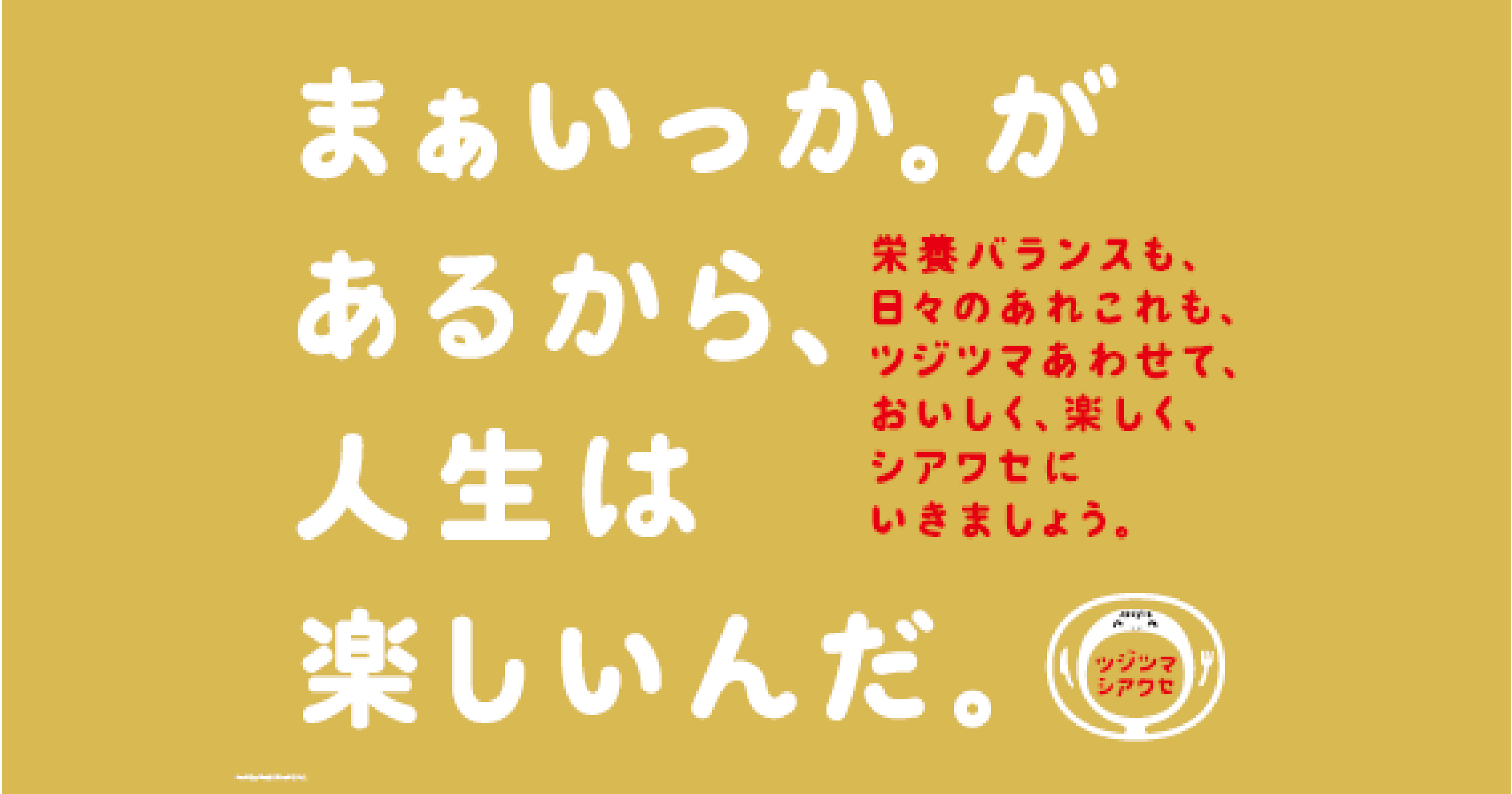 今回提唱する「ツジツマシアワセ」とは、「その時食べたいものを楽しく食べること」を肯定しながらも、一定の期間内に栄養バランスのツジツマあわせをすることで、無理なく健康的な生活を過ごす手法です。