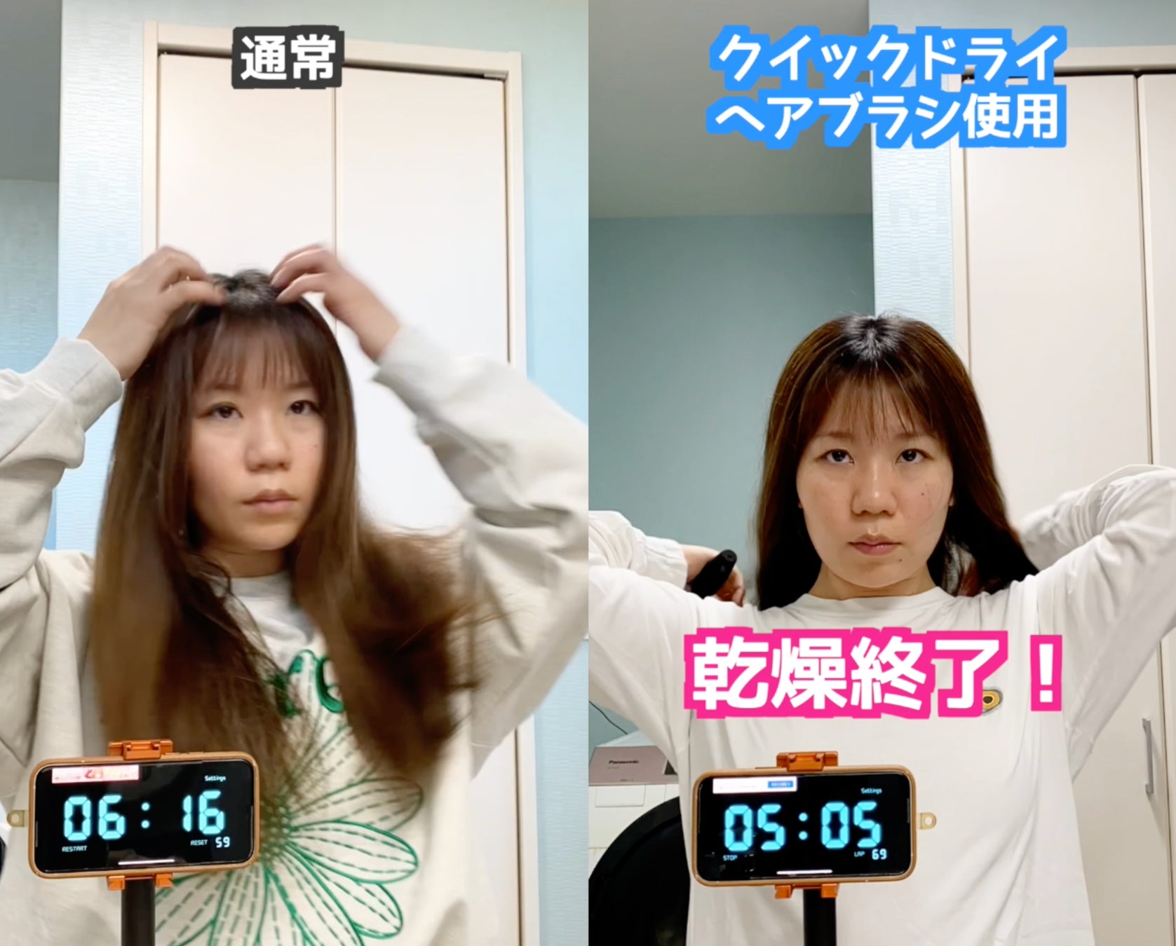 10名でテストした結果なんとドライヤーの乾燥時間が平均で47秒も短縮!長時間のドライヤー熱から髪を守ります♪
