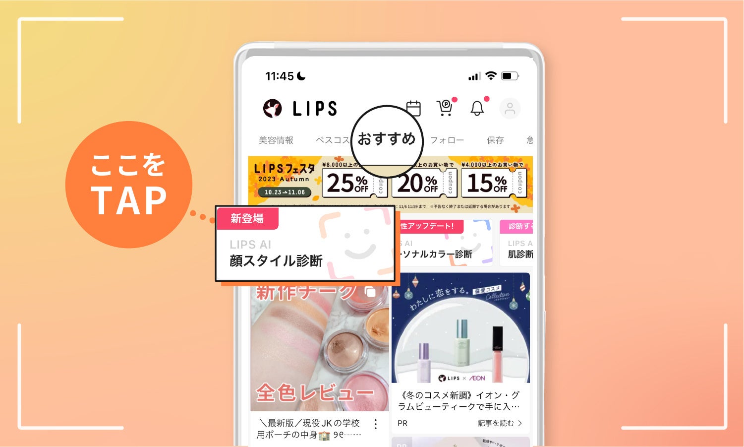 「顔スタイル診断」は、LIPSアプリ内のおすすめタブにあるバナーから、すぐに診断が可能。