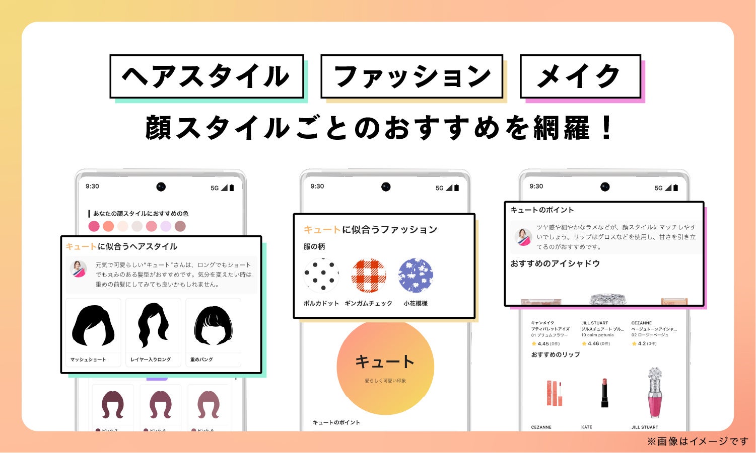 パーツごとの診断だけではなく、顔スタイルごとにマッチするヘアスタイルやファッションなど全身のアドバイスもしてくれるのが、この診断の魅力。