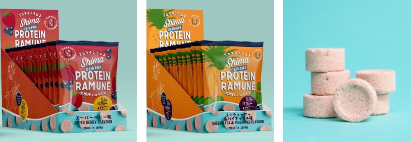 「Shima Okinawa プロテインラムネ」は、世界初のシード・テクノロジーを活用した製品。健康と美味しさ、楽しさを一緒に届けます。一袋には