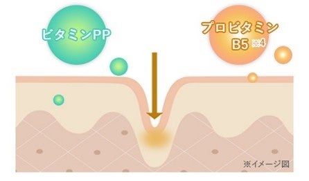 有効成分のビタミンPPがコラーゲン産生を促進し、表皮の奥の真皮からできる真皮ジワを改善するだけでなく、メラニンの生成を抑え、美白※5ケアも叶えます。さらに、有効成分のプロビタミンB5※4は、肌荒れ予防にアプローチします。