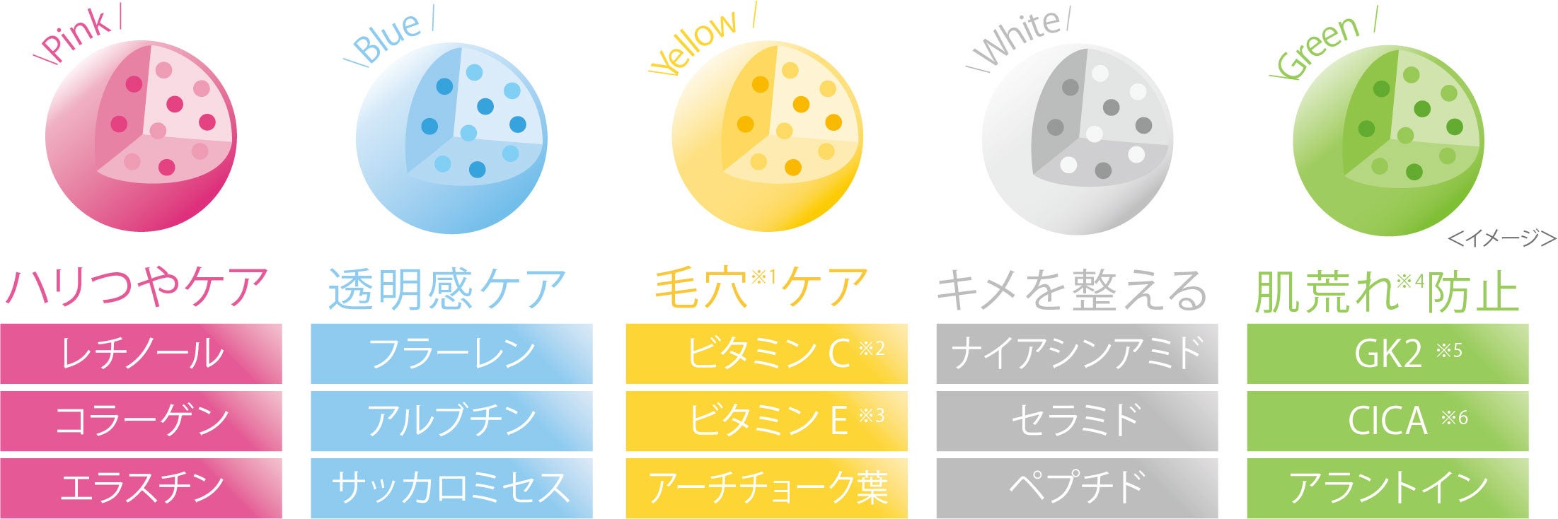 カラー別 肌悩みアプローチ成分in 美容液カプセル
