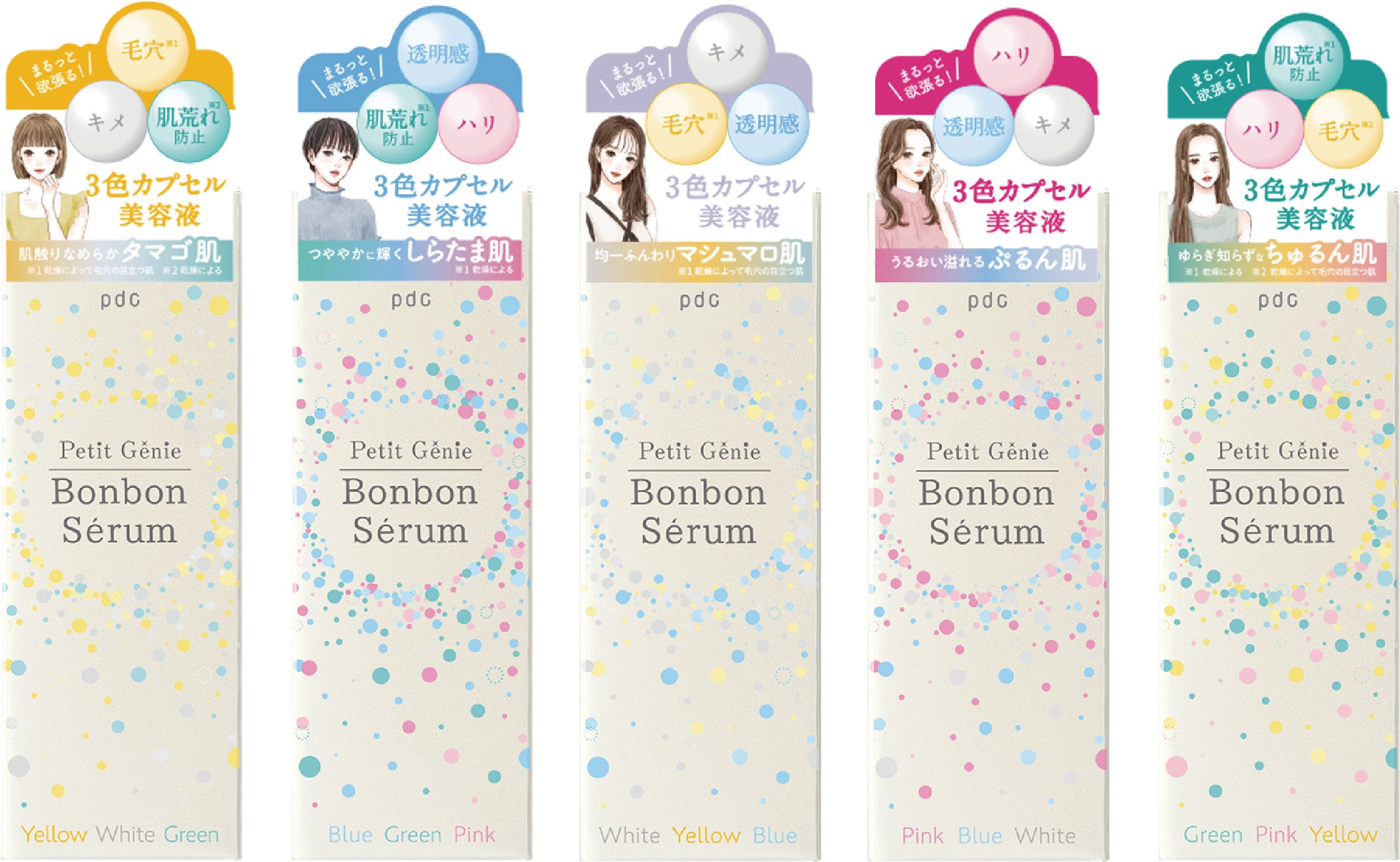 ◆5種類の中から、肌悩みにピッタリな1本を選べます。PBW、GPYはEC限定販売となります。