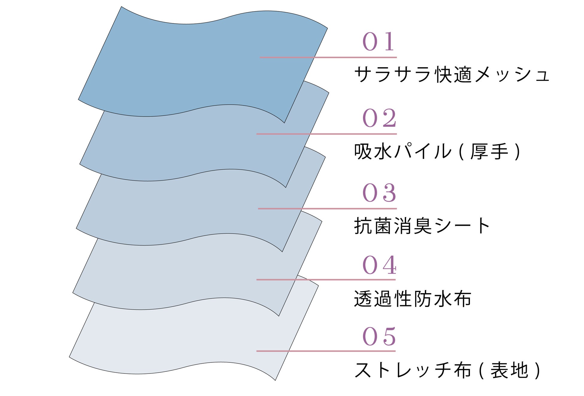 ②しっかり吸水してくれる厚手の吸水保水素材なので、ちょっとした尿漏れにも対応可能。
