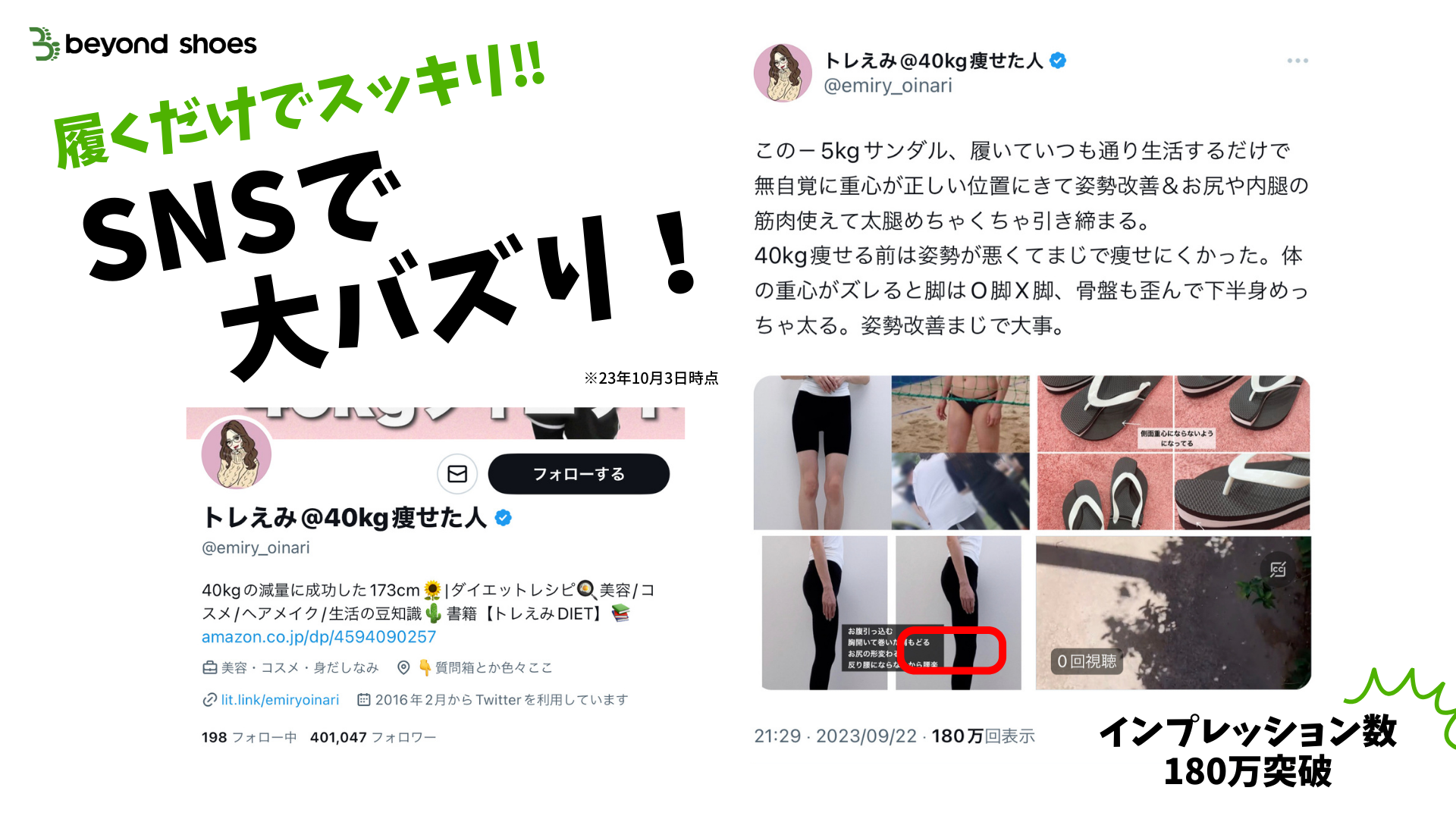 Xにて-5kgサンダル®︎を紹介したポストが180万インプレッションを獲得するほど。