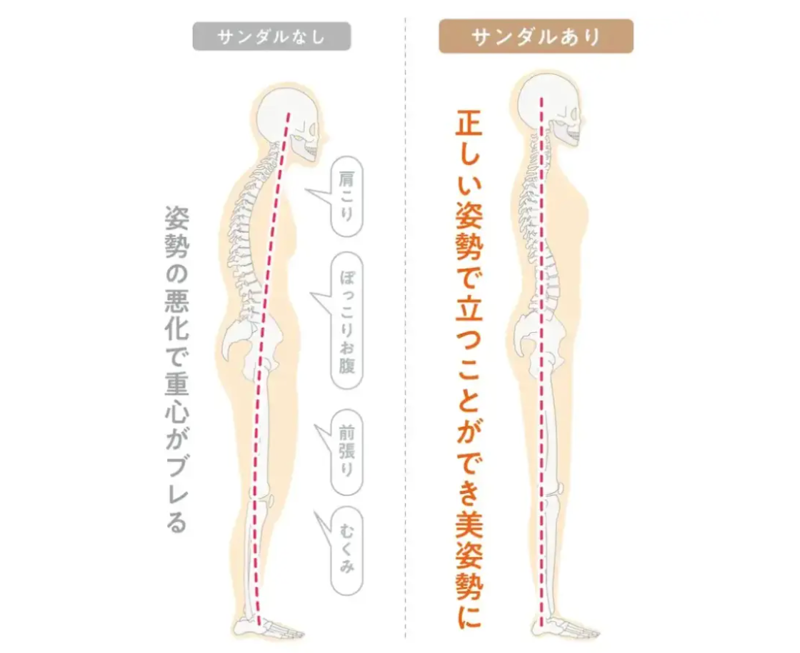 beyond shoesで歩き続けることで美姿勢が保たれるため、見た目もすっきりしたボディへと導きます。また姿勢が変わることで血流も改善も見込めるため全身が温まりやすく、自然と痩せやすいお身体が目指せるのです。