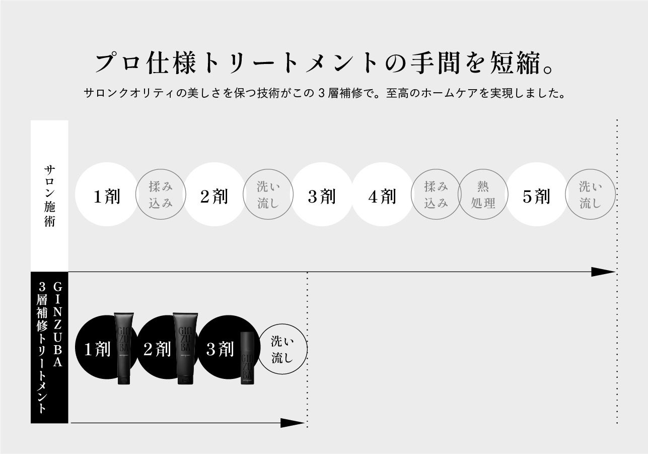 「GINZUBA 3ステップ トリートメント」は、“プロ仕様で至高(※)の指通り”を叶える新発想の「3層補修トリートメント」。