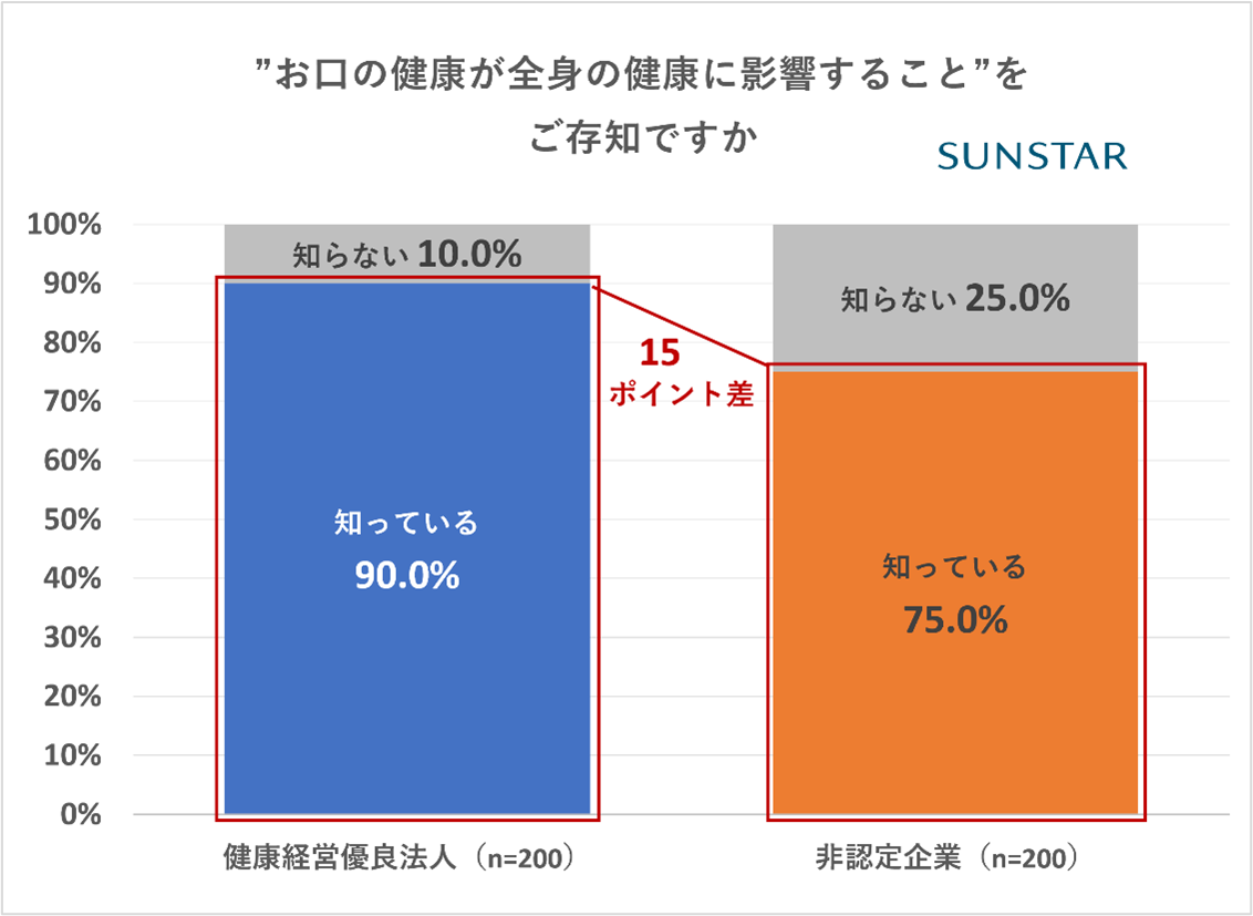 〈サンスター 企業の歯科健診について意識調査〉健康経営優良法人の9割が“お口の健康が全身の健康に影響すること”を知っていると回答、一方で歯科健診実施は3割のみ