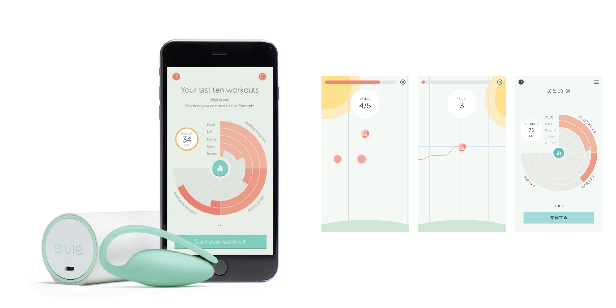 くしゃみをした時の尿もれなど、出産や加齢による骨盤底筋の緩みの対策の一つとして行われる骨盤底筋トレーニングを、運動が苦手な方でも簡単に始められるように開発されています。製品に内蔵された力覚センサーが、骨盤の動きを測定し、本体と連動させた専用アプリで、設定した目標に合わせたエクササイズをゲーム感覚で行うことができます。