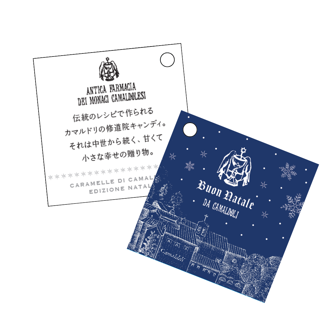 2023年のクリスマス限定タグは、カマルドリ修道院の雪景色がデザインされています。