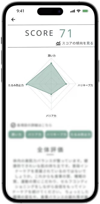 PITTANの肌のためのインナー測定サービスでは、ユーザーはPITTAN独自開発のキットを用いて肉眼では見えないレベルの極微量の汗を採取し、PITTANのラボに郵送いただきます。PITTANの共同創業者兼、取締役 最高サイエンス責任者の東京大学薬学部 角田誠准教授が開発した極微量汗中アミノ酸分析技術およびデータ解析技術により、個々人で異なる肌のインナーコンディションを解析します。1週間以内に専用アプリで、「潤い力」「ハリキープ力」「バリア力」「たるみ防止力」の4項目と肌のインナーコンディションに対する総合スコアをチェックすることが出来ます。定期的な測定による肌のインナースコアのトラッキングにより、効果的なライフスタイルを見つけることができます。専用アプリでは、今のあなたに不足している栄養素やそれらを補うことができる食材、サプリメント、スキンケア商品等をサポート情報として提供します。
