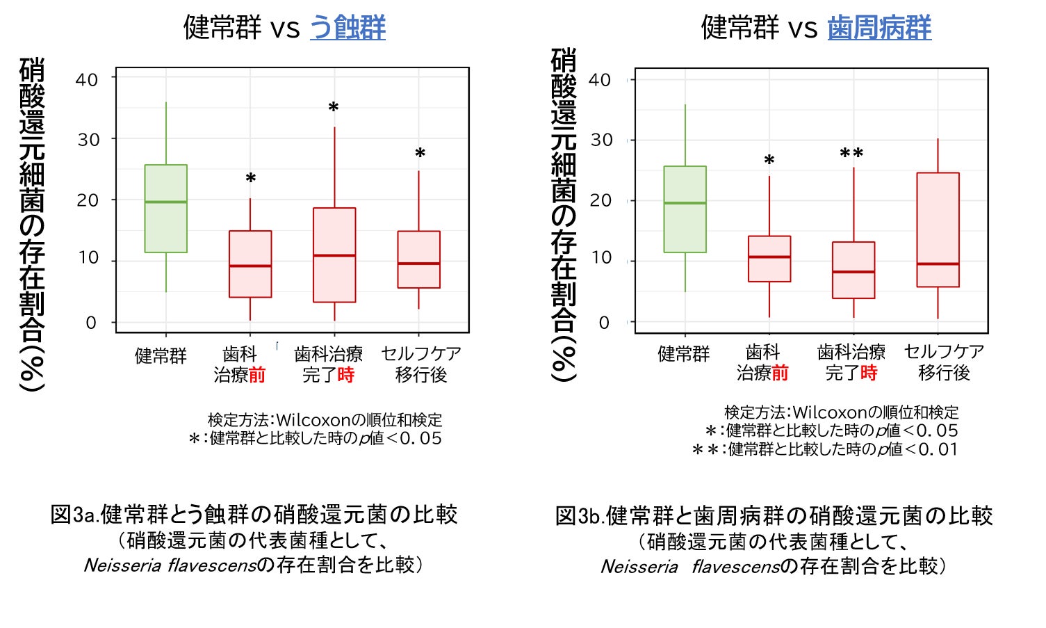 (3)う蝕・歯周病予防に寄与する可能性のある硝酸還元菌※11の割合が歯科治療後も少ないことを解明