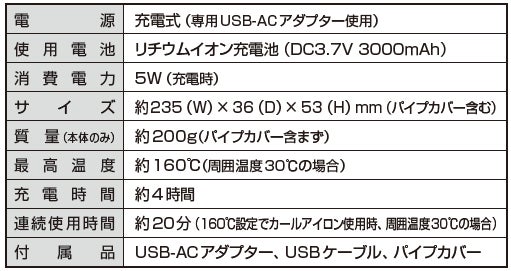 ・USB充電式。コードレスで使用可能&コンパクトサイズなので、外出時のお直しに便利。
