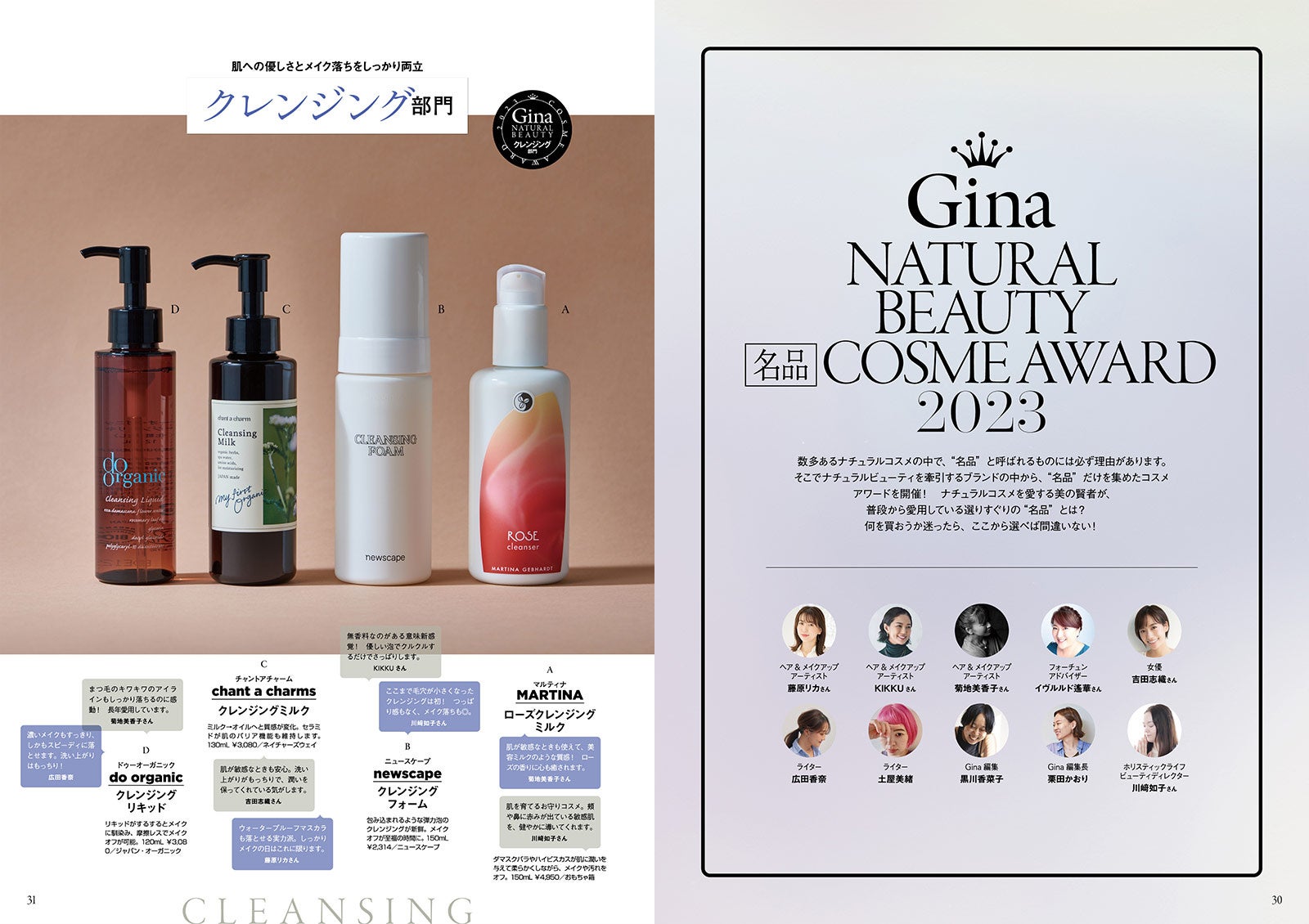 そして人気企画の「Gina認定! 名品アワード2023」では、美容賢者たちが実際に使って「これは良い!」とオススメした名品を厳選し、17の部門ごとに発表!