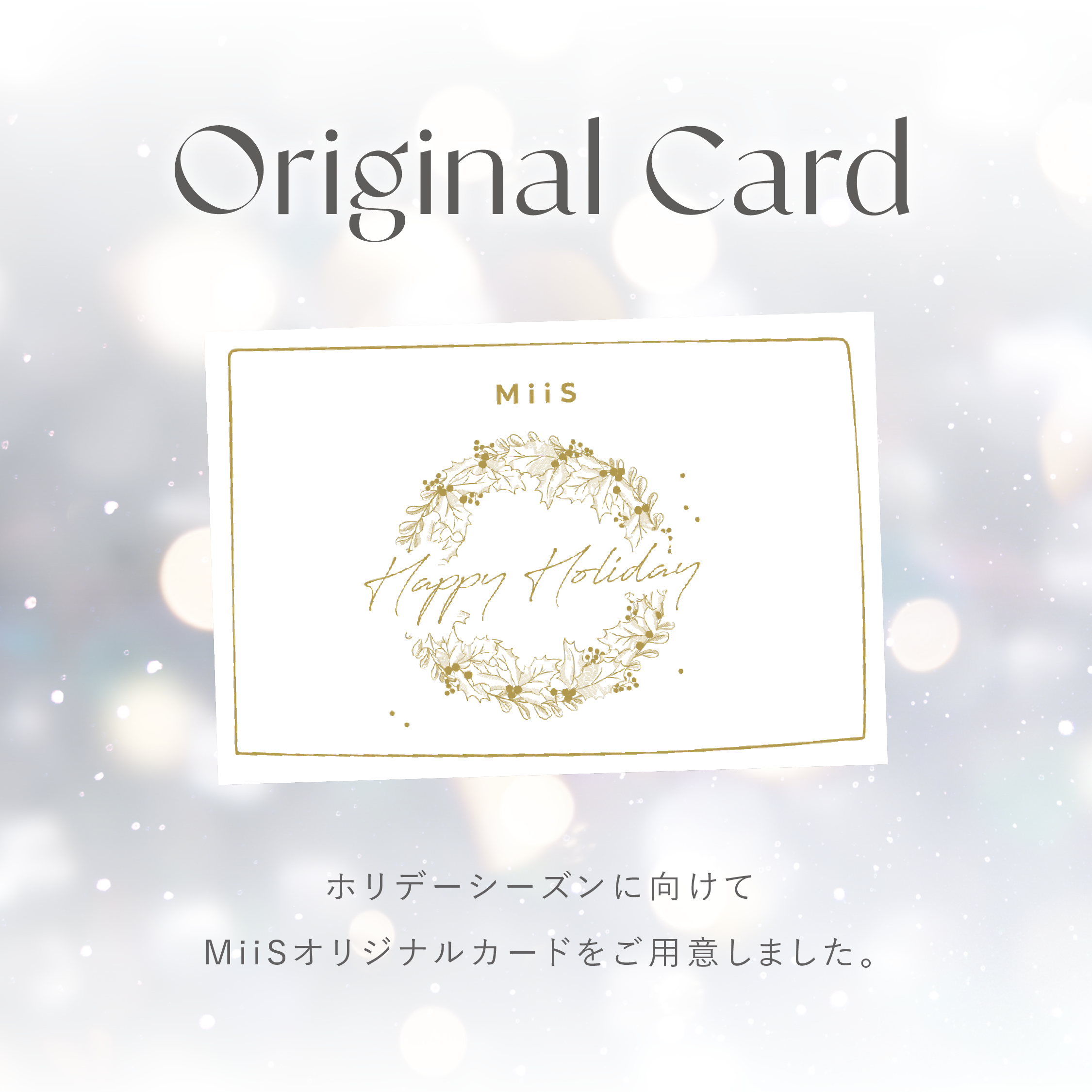 さらに、MiiSオリジナルデザインのメッセージカードや、クリスマス仕様のラッピングを施した限定BOXでお届けいたします。