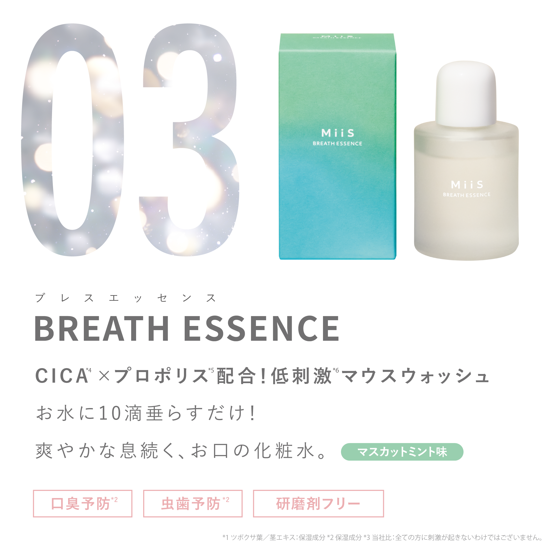 MiiSは、「オーラル美容を広めて、人々の人生を輝かせるエッセンスになる」というミッション実現に向け、商品の見た目だけでなく、成分にも徹底的にこだわり続け、歯も、息も、笑顔も、みなさんの輝く瞬間をつくるあたらしい美の習慣「オーラル美容」を提案しています。