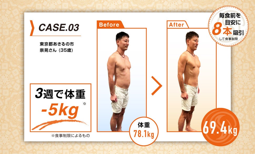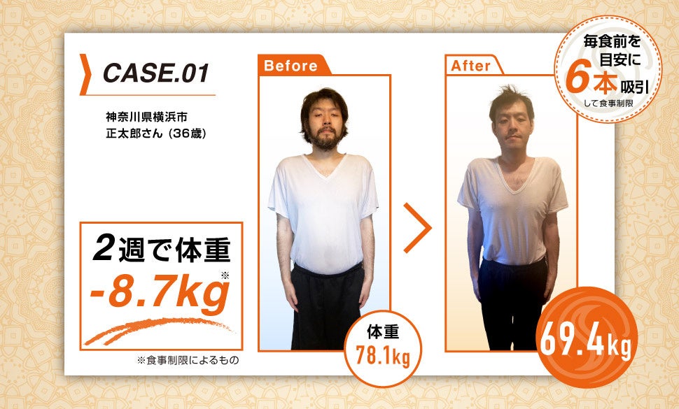 食事や間食をしたい時に代りに喫煙することで食事量を抑えられ、減量できる新しいダイエット法です!!