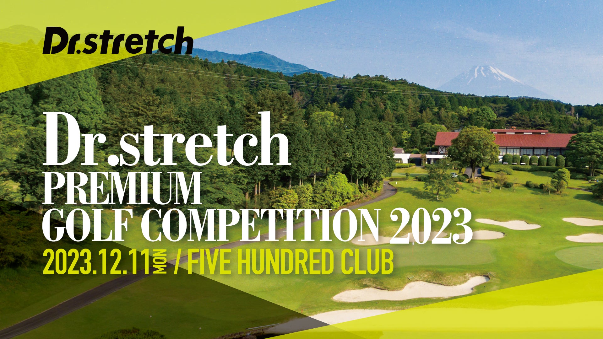 Dr.stretch主催の『Dr.stretch PREMIUM GOLF COMPETITION 2023』は、富士山の麓に位置する創業40余年の名門コース「ファイブハンドレッドクラブ」で貸し切りラウンドを楽しめるプレミアムなゴルフコンペです。競技方法はペアでのベストボース方式をとり、初心者から上級者まで参加いただけます。ゲストにはプロゴルファーの竹村真琴氏が参加。プレイ終了後にはDr.stretchのトップトレーナーによるパーソナルストレッチも受けられるなど、Dr.stretchならではの体験を用意しています。