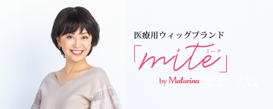マチュリナブランドから生まれた『mite by Maturina』はイタリア語の「mite(温和な)」という言葉を起用し、つらい治療期を穏やかに過ごせるよう願いを込めて名付けました。元気と美しさをサポートできるよう思いを込めた『mite』。お客様に寄り添い、心身を支えるお手伝いをします。