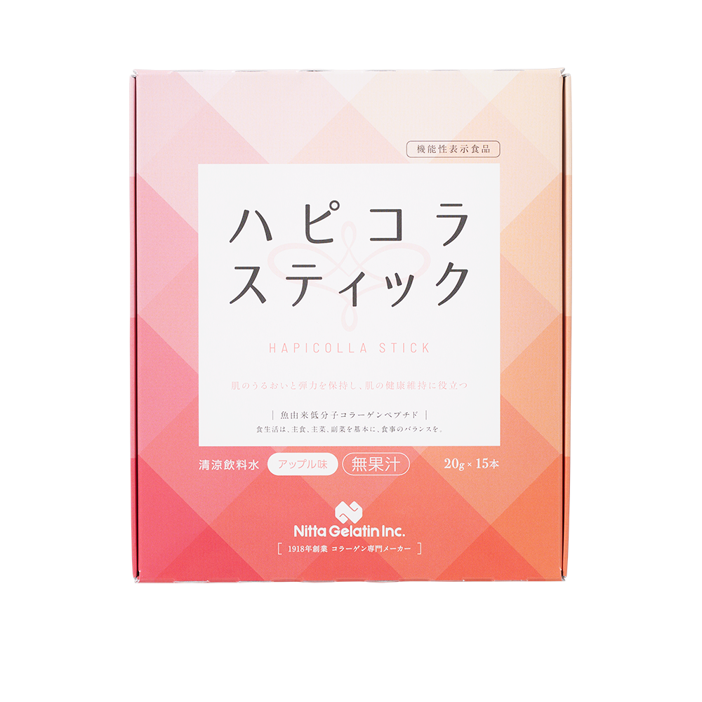 一般のお客様向けに『コラゲネイド』や『ハピコラスティック』などコラーゲンペプチドを使用した健康食品を展開しています。これらの商品に使用している『Wellnexコラーゲンペプチド』は新田ゼラチンの独自技術により、体内に吸収されやすく、原料調達から製造・品質保証まで一貫した安心品質を追求しています。