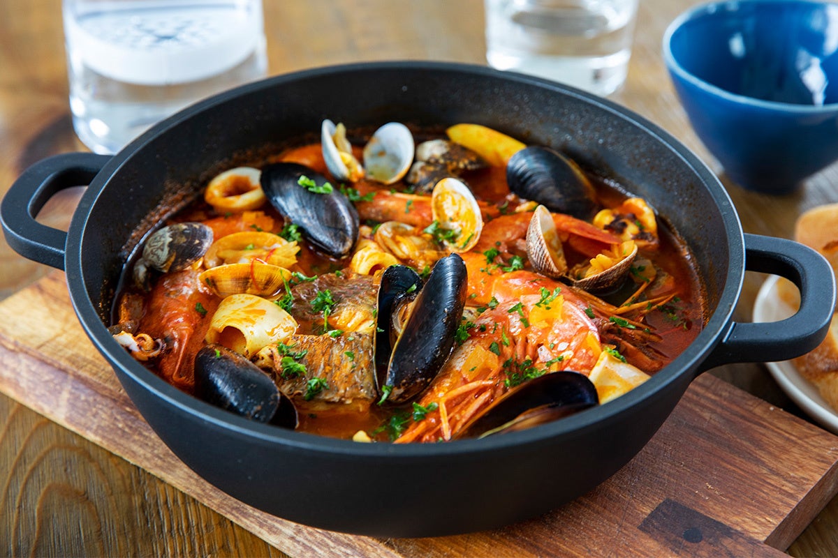 ワンポイント! 外で食べると意外に生臭い時もあるブイヤベース。実は、煮込み方にポイントが。 魚介は良かれと思い煮込みすぎると生臭さが出てしまい逆効果! 今回は煮込み時間を抑えることで、おいしいブイヤベースのできあがり。 イカが手に入りにくい時はタコでも代用可能。揃わなければ鯛のあらや、アサリだけでも十分おいしく作ることができます。 |