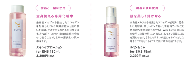 また、『F-WiTH Lumin Brush』には専用化粧水と美容液をご準備いたしました。