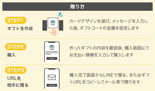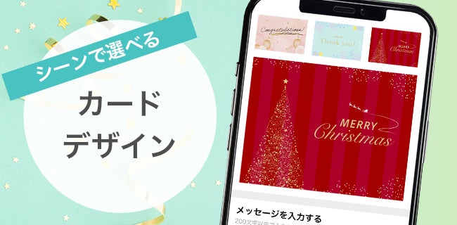 シーンに合わせて3種類(随時追加予定)のカードデザインの中から選べるほか、メッセージを自由に入力できます。相手への気持ちが伝わる、「キレイパス byGMO」ならではのオリジナルギフトを贈ることができます。