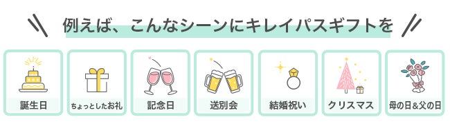 身近な人はもちろん遠方に住む人やなかなか会えない人など、直接贈り物を渡せない状況下でも、『キレイパスギフト』を通じて、大切な人へ感謝や愛情を伝えることができます。