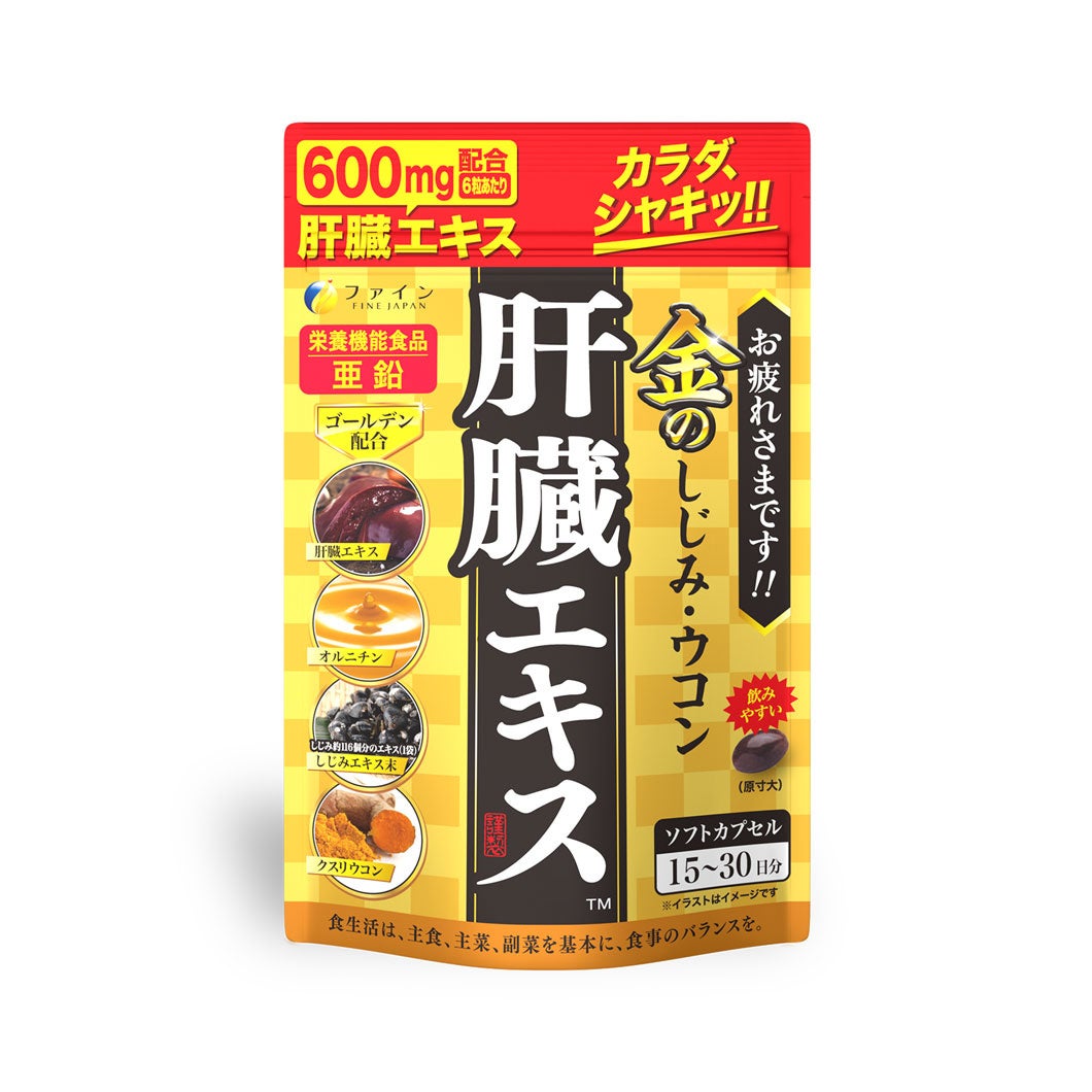 豚のレバーを使用した肝臓水解物をはじめ、1袋当たりしじみ約116個分の国産のしじみエキス、クルクミンと亜鉛、オルニチンを黄金配合し、イキイキと生活したい人々をサポートします。夜のお付き合いが長い方だけでなく、元気が欲しい方や毎日を健康に過ごしたいという方にもご利用いただきたい商品です。