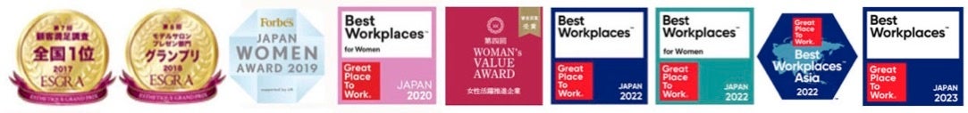 FORBES JAPAN WOMEN AWARD 2019 および 2018 従業員規模300名未満の部 5位入賞、エステティックグランプリ 2023年、2020年、2017年、2016年、2013年 顧客満足部門 全国1位 (史上初5度)