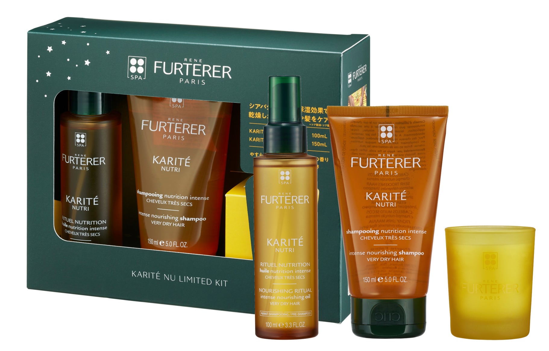 エシカルシアバター*1とシアオイル*2がうるおいとなめらかな髪へ導くシャンプー前のスカルプ&ヘア用トリートメント「カリテNU プレオイル」と、乾燥する頭皮と髪をしっとりまとまる髪に導く「カリテNU シャンプー」をセット。さらに、このキットだけで手に入る「コンプレックス5 コンセントレート」の鮮やかに香るオレンジやラベンダーの香りのキャンドルをイン。慌ただしいホリデーシーズンをパワフルな保湿力と心地よい香りで、心まで潤いを与えてくれる特別なコフレです。