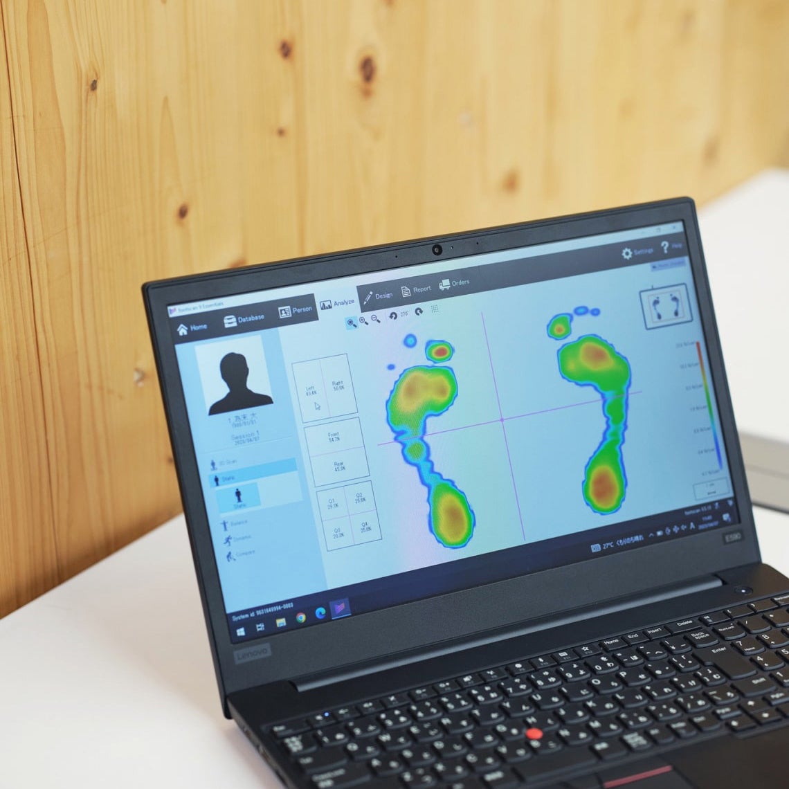 インタビューは為末さんの足の計測から始まります。足底圧計測機を用いて足にかかる圧力などを足の専門家が分析・観察。トップアスリートとして世界と戦ってきた「足」はどんな足なのか。足から為末さんの人生が垣間見える興味深い結果となりました。