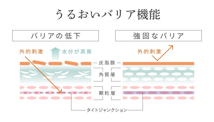 皮膚の第二のうるおいバリアであるタイトジャンクションにアプローチ。肌の生まれ変わりサイクル整え、健やかな肌に導きます。