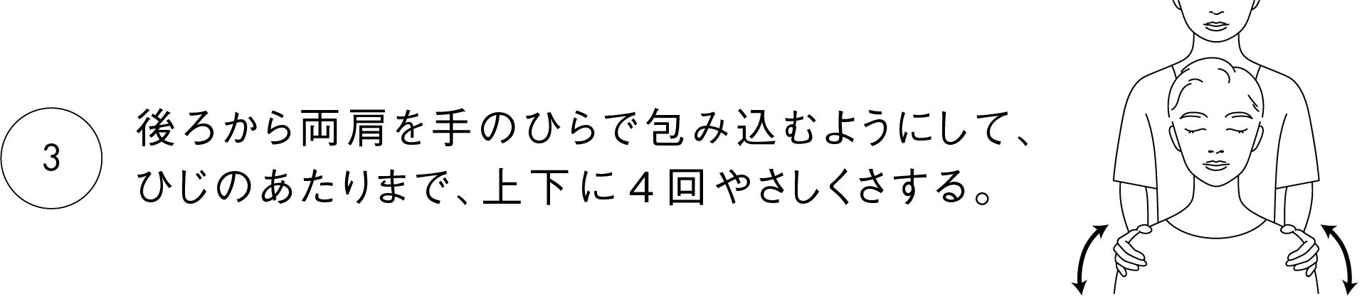 さらに、手技の最初の「相手の両手をしっかり包み込むこと」、最後の「相手の後ろにまわり、両肩からひじまで