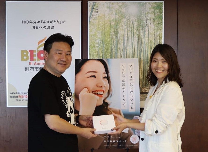 別府を選び起業・創業する人にスポットを当て、「地域課題の解決」や「社会価値を創造する」ビジネスモデルが生まれた背景やストーリーを知ってもらい、応援してもらうためのイベント『ONE BEPPU DREAM AWARD2022』で、志賀遥菜さんがファイナリストに選ばれたことをきっかけに、志賀さんと別府市のご縁が始まりました。 EggUの箱を開けると、かわいいピンクゴールドのロゴマークと分かりやすいイラスト。検査キットを手にした女性たちの、ちょっぴり不安な気持ちを受け止めて、やさしく背中を押してくれるメッセージ。EggUからは、「今と未来をどちらも大切にしたい女性を応援したい!」という志賀さんのあたたかく、そして熱い想いが伝わってきました。 EggUを通して別府市役所の女性職員が自分のからだのことを知り、今の自分に合った様々な選択肢を知る機会をくださったことに感謝申し上げます。