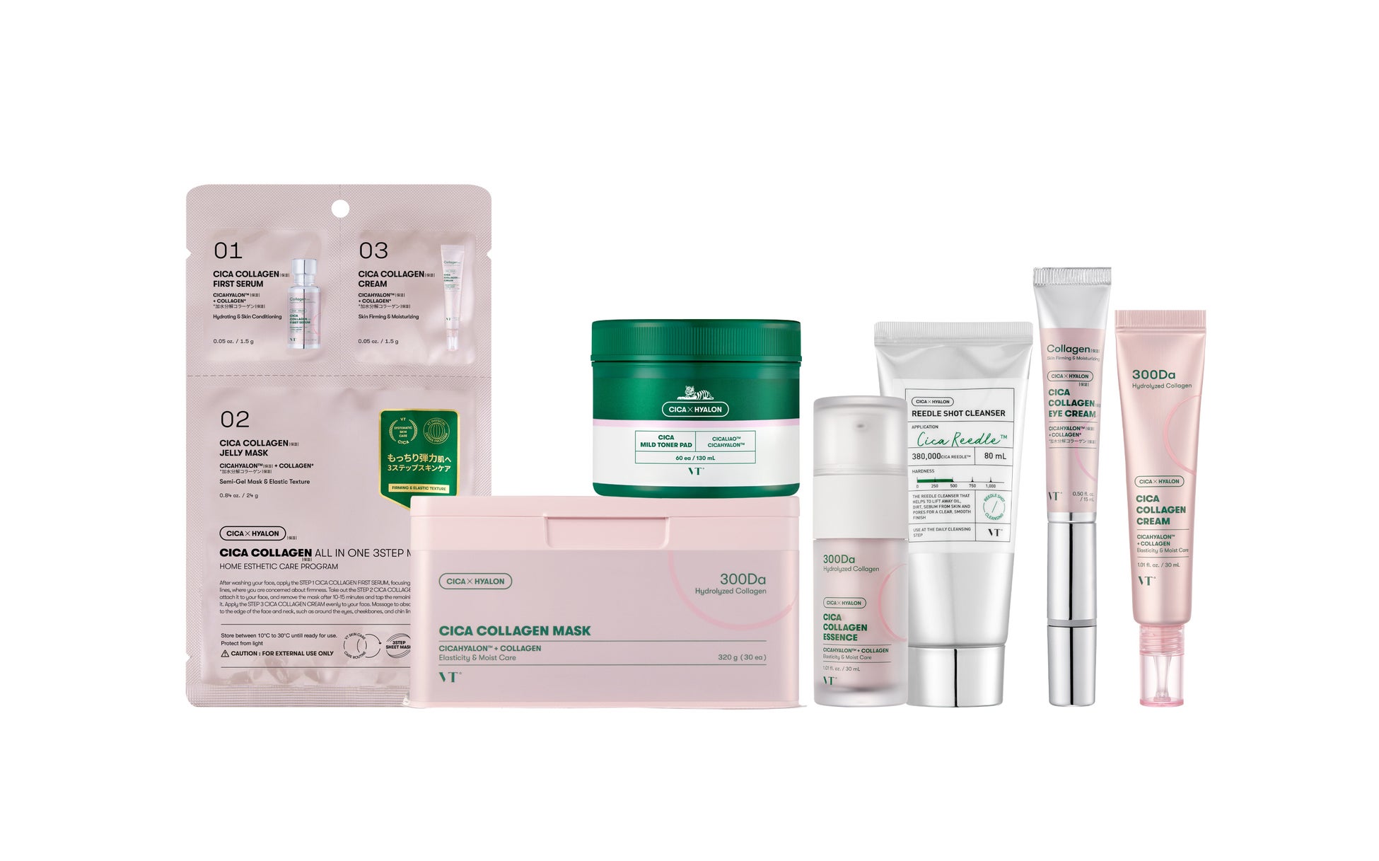 冬にかけてカサつきやすい、乾燥肌へCICA*4とコラーゲン*7で弾力&保湿ケアをご提案します。9月メガ割で即完売となった「リードルショット クレンザー」、VT CICAに300Da低分子フィッシュコラーゲン*7と大豆プラセンタ *8を加え、ふっくら弾むハリ弾力のある素肌へ導くシカコラーゲンラインから「シートマスク」・「エッセンス」・「クリーム」、新商品「シカコラーゲン3ステップオールインワンマスク」などを含む7点セット! CICA マイルドトナーパッドで肌のキメを整えた後、お家で簡単エステ級ハリ弾力ケアができます。