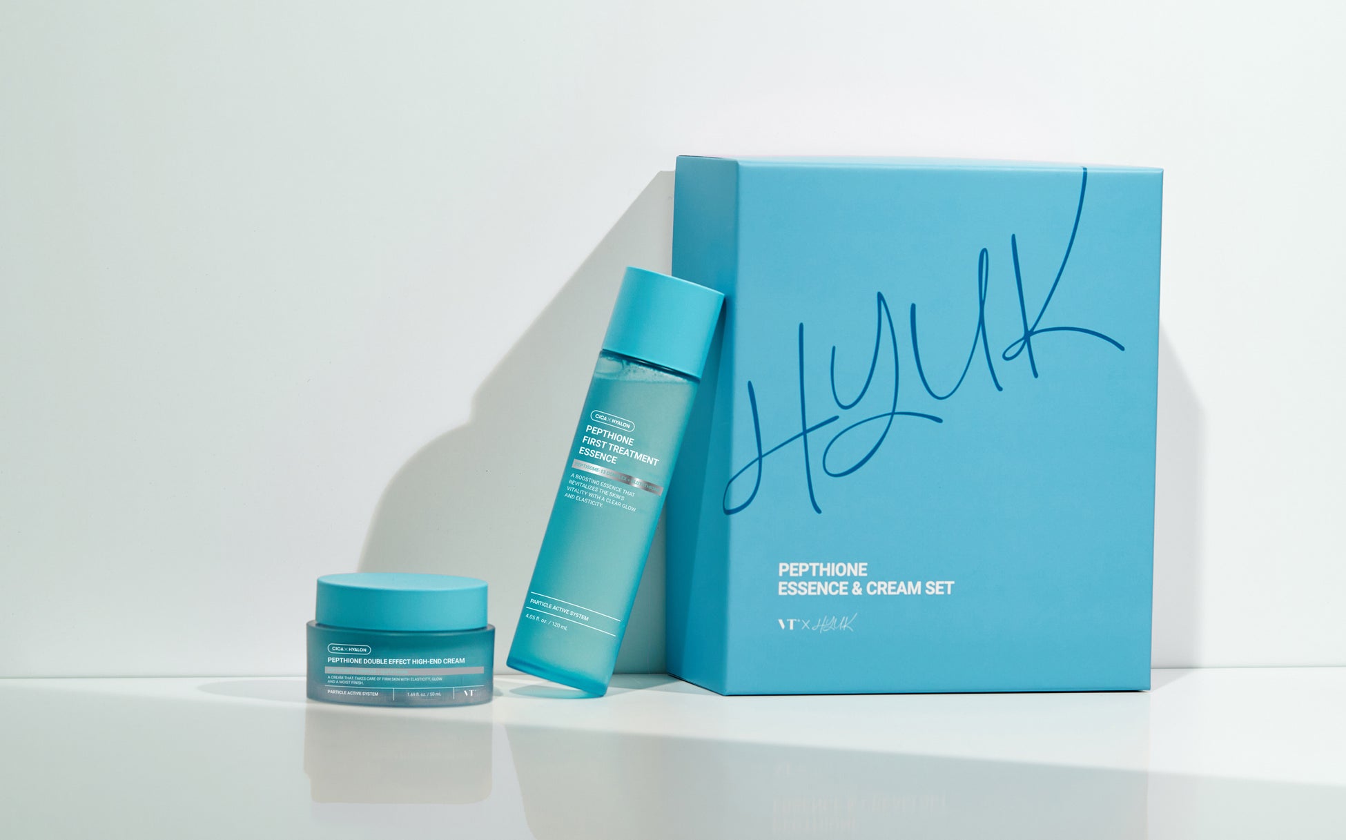 Qoo10では、成分スペシャリストHyukとVTのコラボ新作も販売中!共同開発したペプチド*5とグルタチオン*13でエイジングケア*14&透明感*15ケアまで働きかけるこだわりぬいた商品となっています。