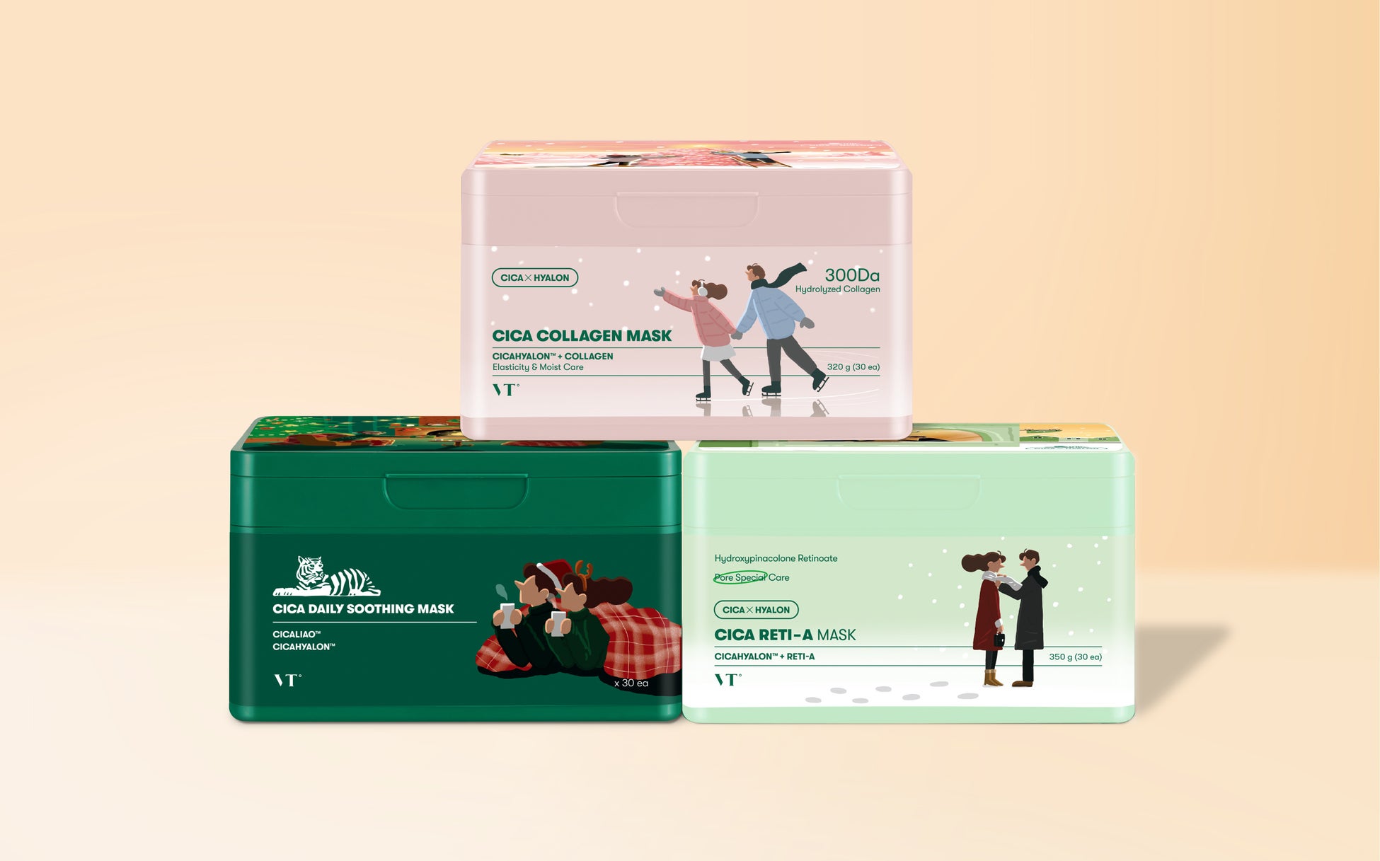 VTを代表するシートマスク3種がHEEZOが描いたほっこりする冬景色イラストの特別パッケージになって再登場です。