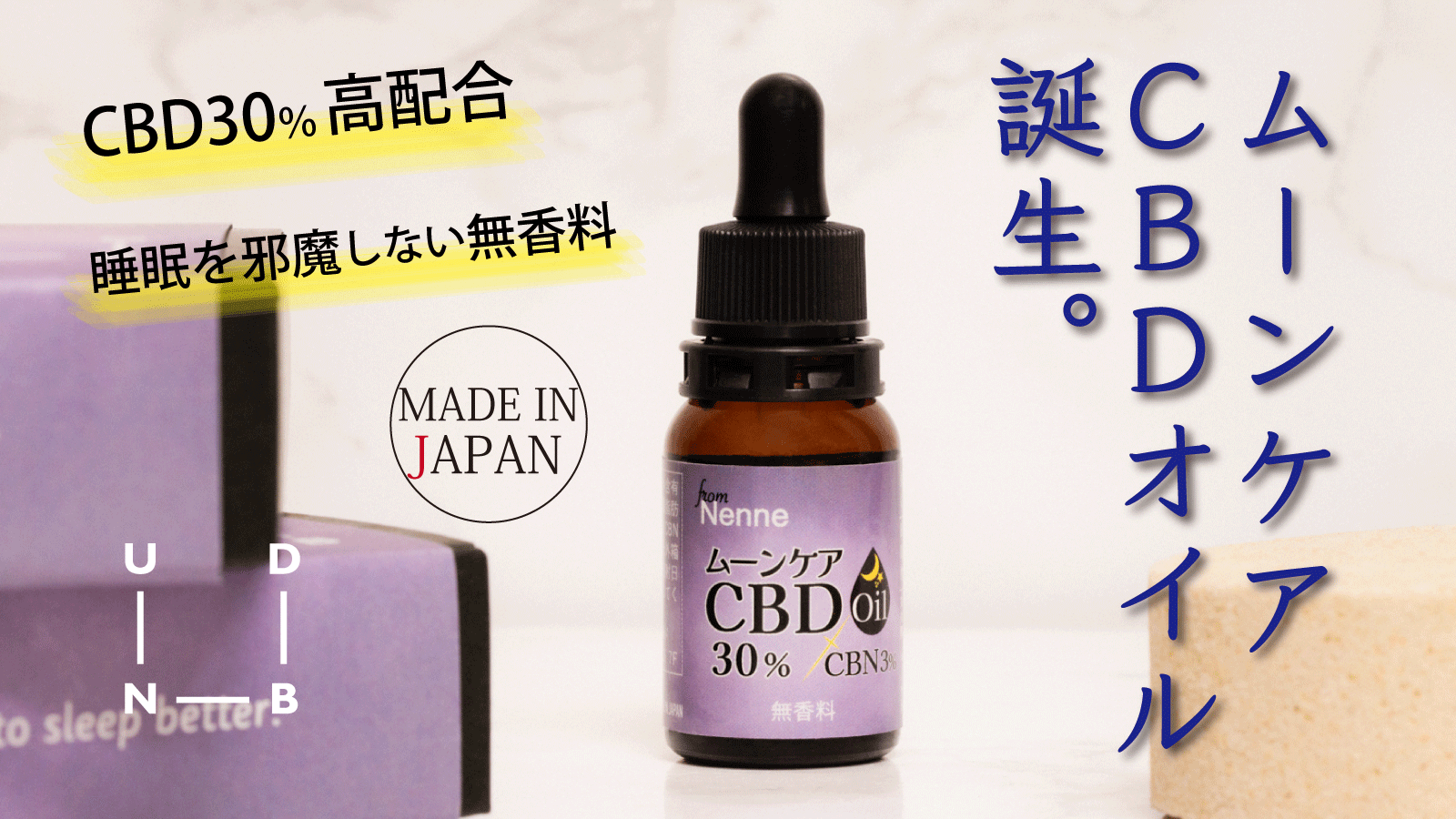 2020年に発売を開始した当社CBDバスボムの旗艦ブランド『Nenne(ネンネ)」から、CBD30%とCBN3%のアイソレートをそれぞれブレンドした「ムーンケア CBD Oil 30% from Nenne」を発売いたします。