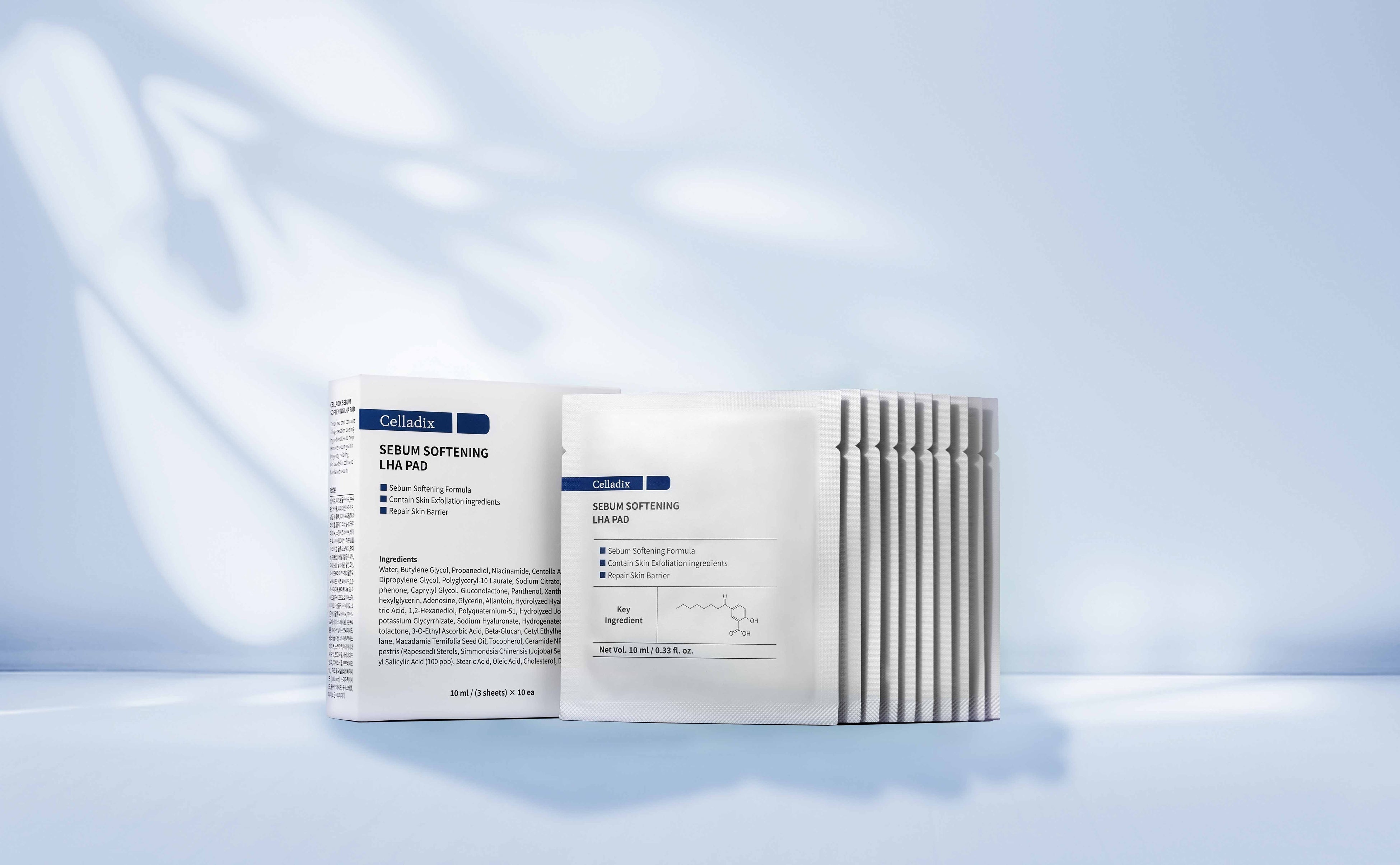 従来の131ラインの共通成分(フィトステロール:セラミド:脂肪酸=1:3:1)の効果に加え、LHA*が配合されており、パッドを貼るだけで、古い角質や皮脂の粒が柔らかく軟化されるので、清潔な皮脂ケアが可能です。