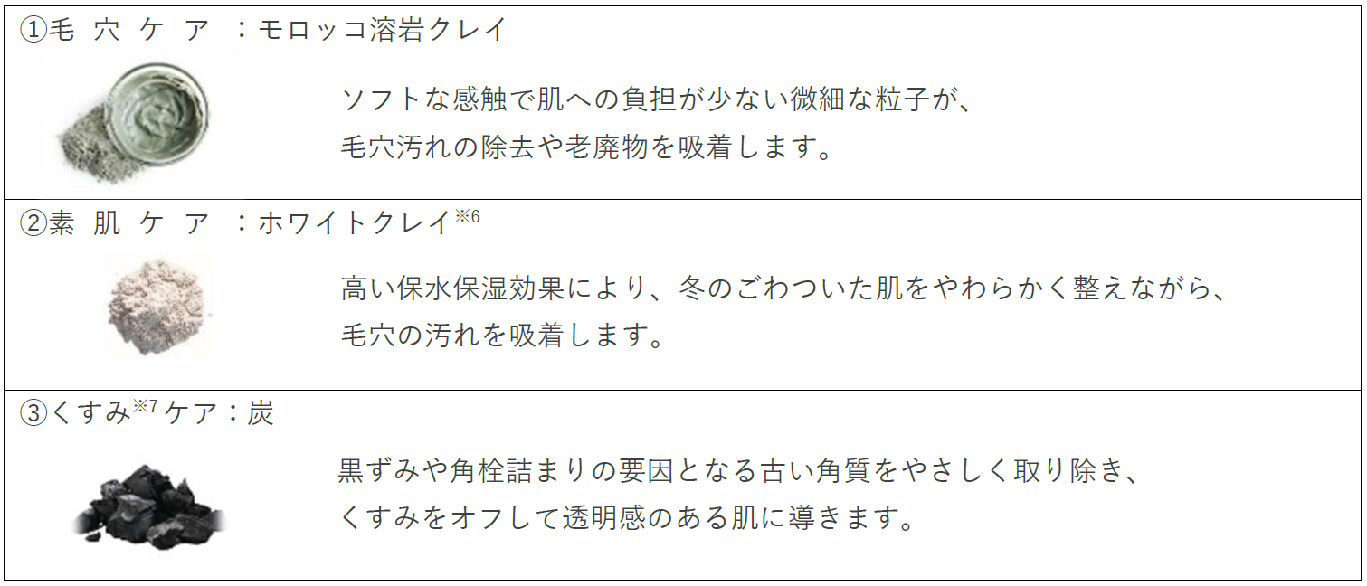 1.【冬の毛穴汚れをほぐす】毛穴汚れにアプローチする3種類の成分を配合