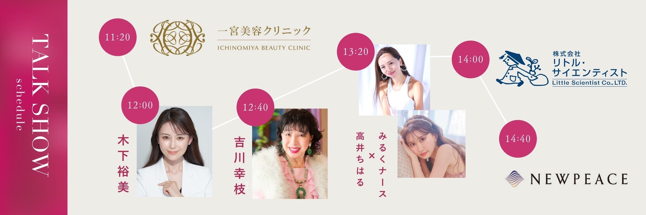 クリニックでは先生からの美容カウンセリングを無料で受けることができたり、トークショーでは、20代から80代の幅広い年齢層の美容家が登壇。今回東海地区出身の出展者と地域を盛り上げている地元インフルエンサーを中心に登壇しイベントを盛り上げます。