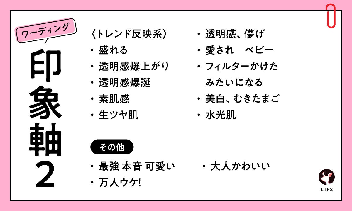 また、”生ツヤ”や”水光肌”など、メイクトレンドを表すようなキャッチーな言葉に言い換えていると刺さりやすいようです。