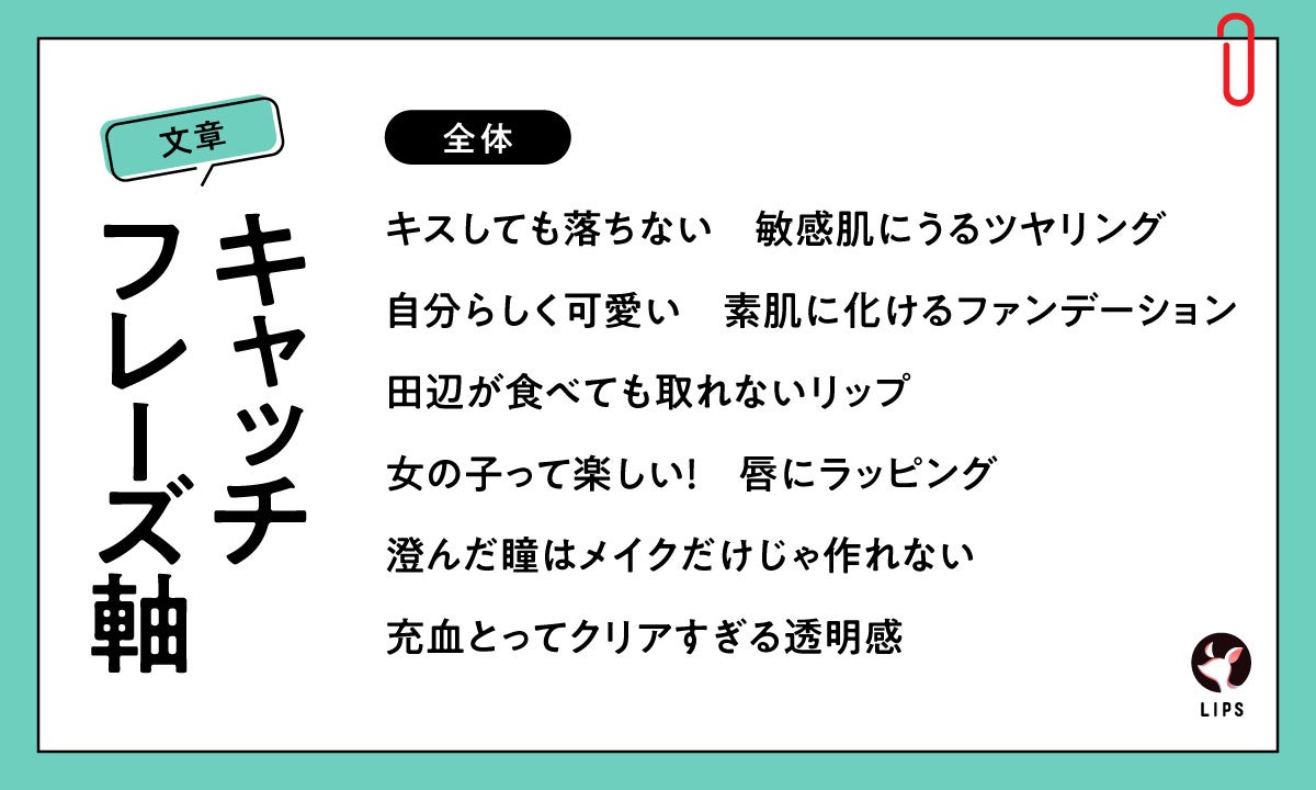 上記のようなキャッチフレーズが今回LIPSユーザーから寄せられた声となりますが、ここでもユーザーの心を掴む面白い言葉選びが際立っていました。