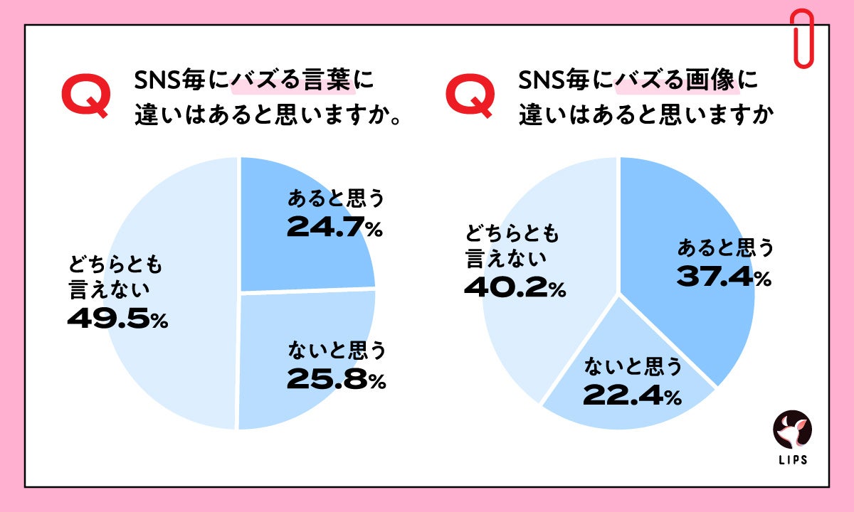 それぞれ特色があるSNSですが、「SNS毎にバズる言葉や画像に違いはあると思いますか?」という質問を切り口にバズり方の違いをリサーチしています。