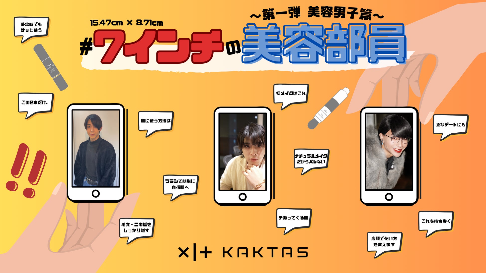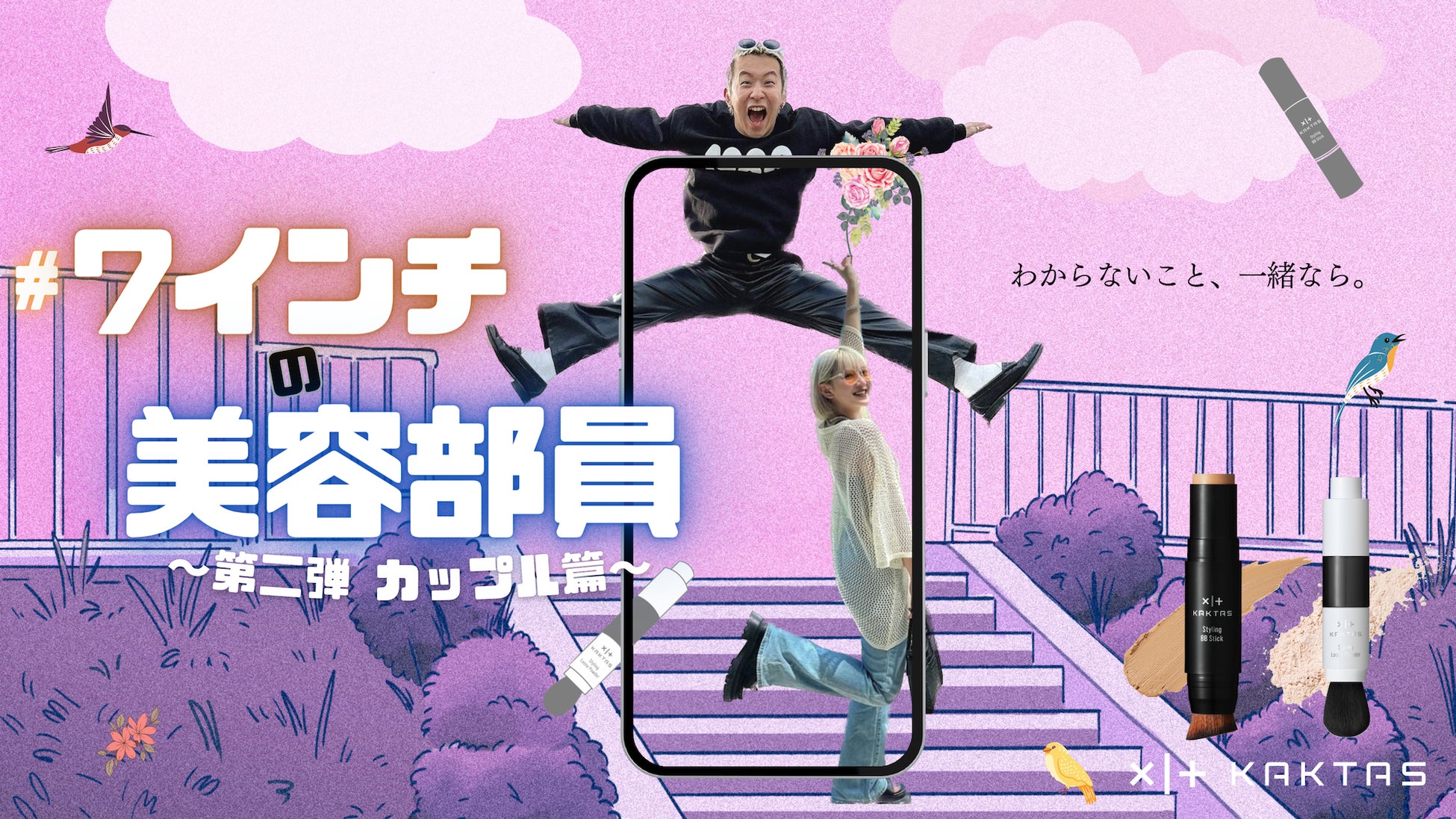 一部のKAKTAS取扱店舗にて設置している7インチサイズのモニターにて人気クリエイターと協力して製品紹介動画を放映する施策になります。そのような店頭でコスメを紹介する存在を美容部員に見立てて「#7インチの美容部員」という施策名で展開しており、今回はその第二弾「カップル篇」となります。本日より全国のLOFT、ドン・キホーテ、@cosme STORE、ハンズ等(一部店舗は除く)の店頭モニターで随時公開していきます。
